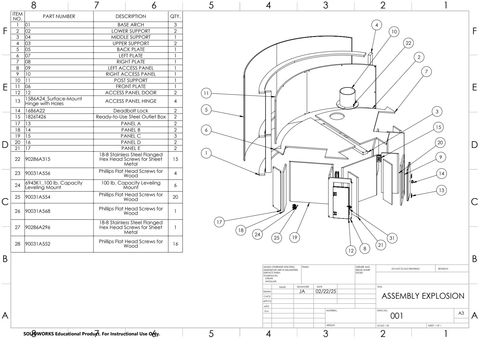 From sketching refinement I moved into building the model in SketchUp for the purpose of rendering, and into SolidWorks for the purpose of construction refinement.