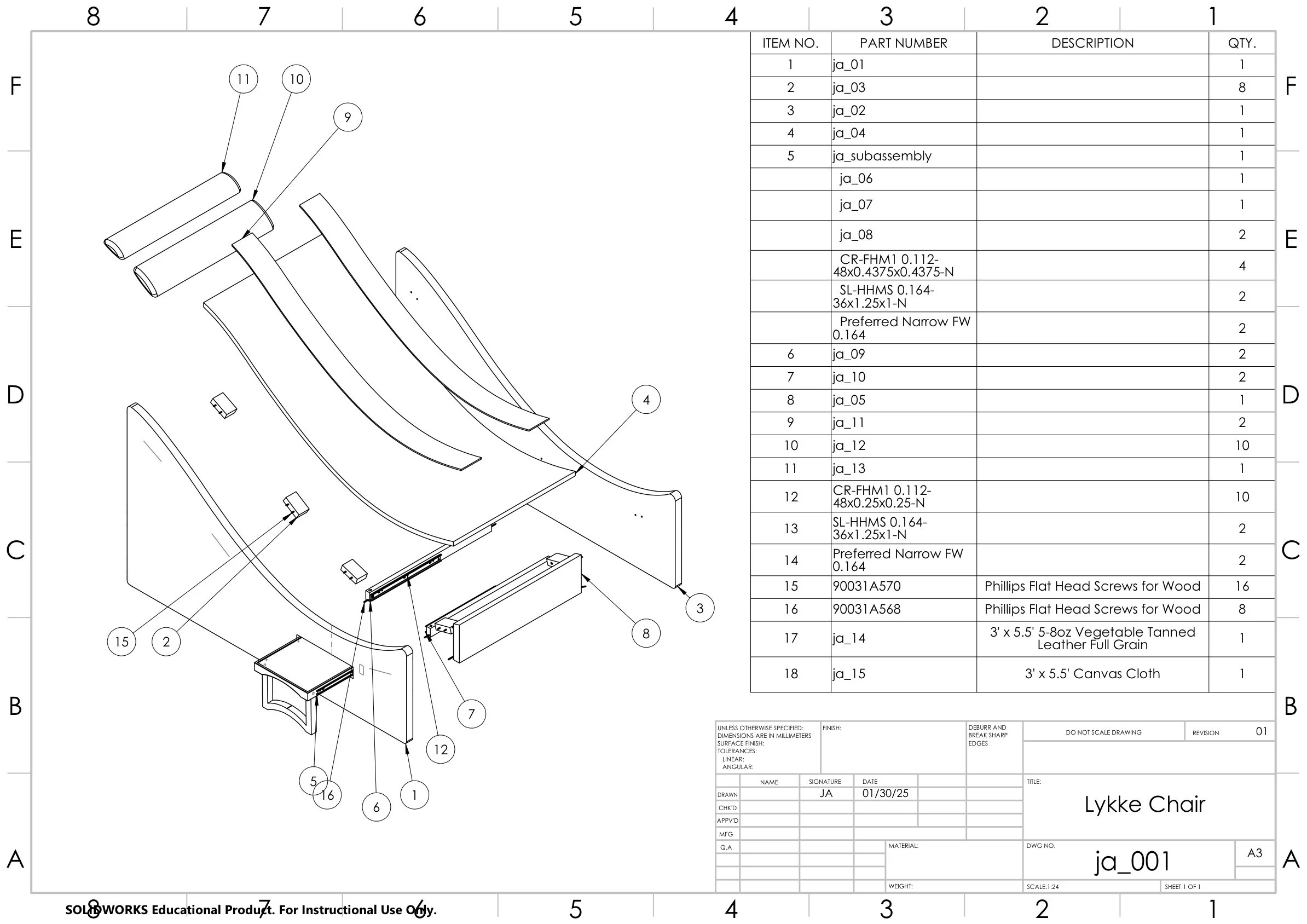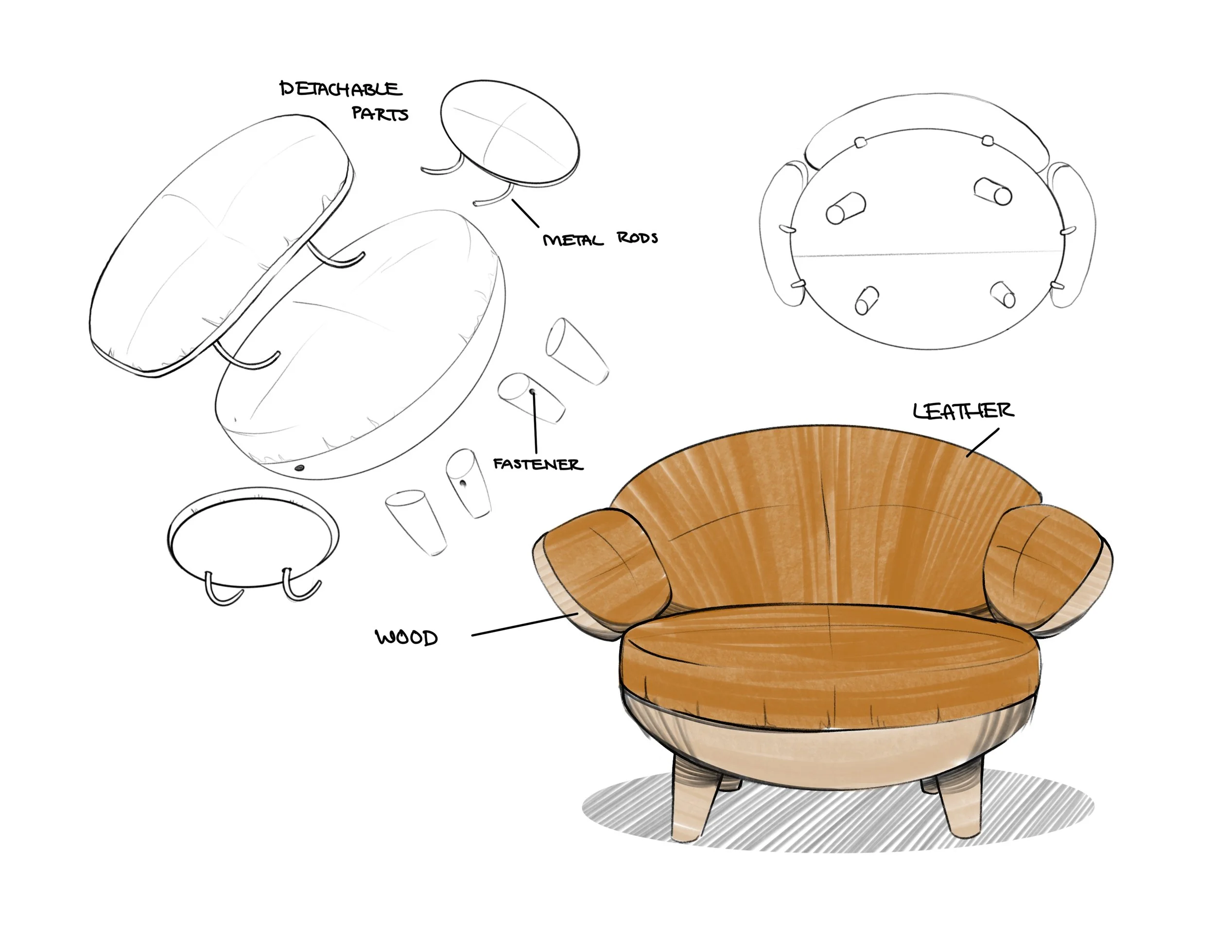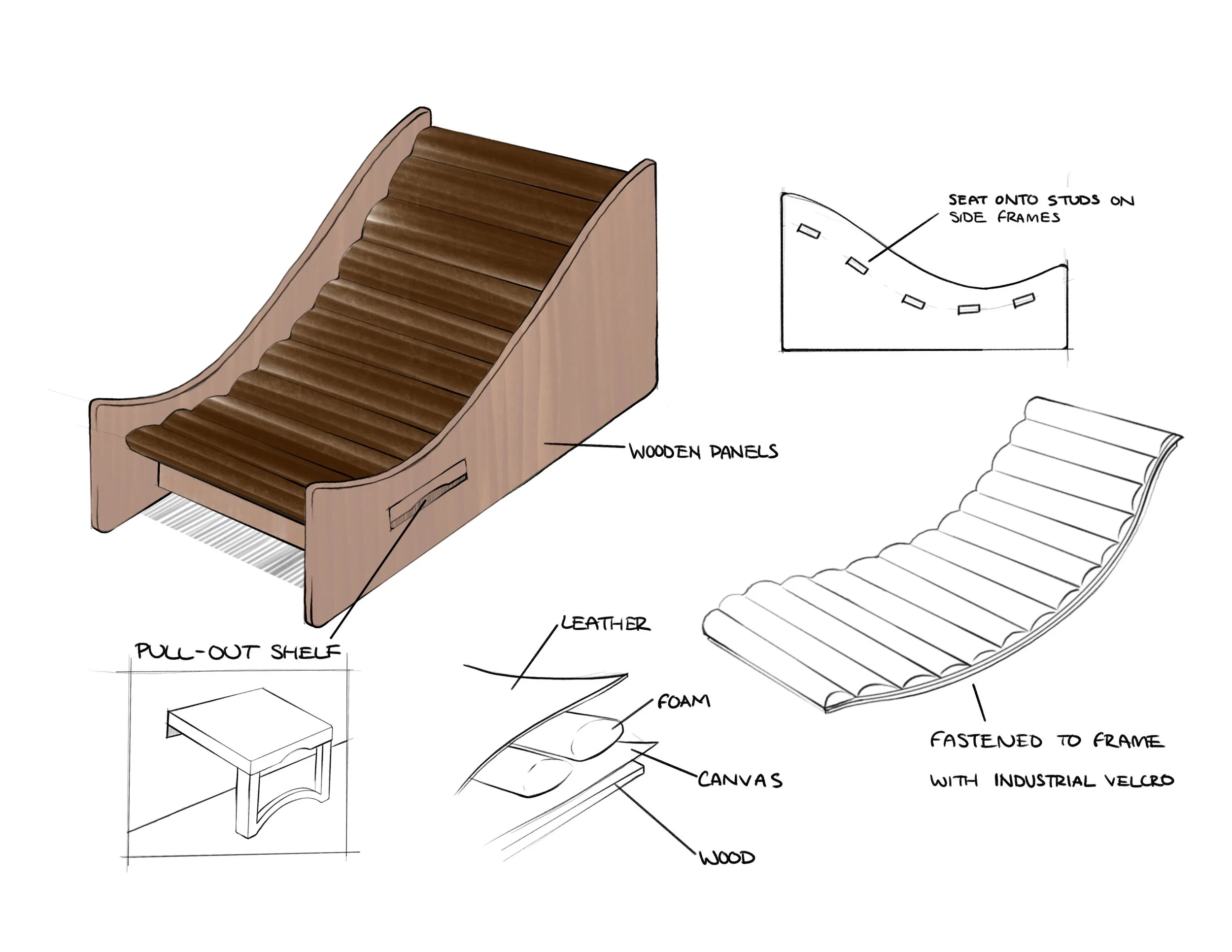 The objective of this project was to create a chair or similar piece of furniture that would meet the following criteria: the ability to be flat-packed, ergonomic design, composed of natural materials. It should explore the relation between structure and simplicity, creating a piece that blends comfort with modern aesthetics.